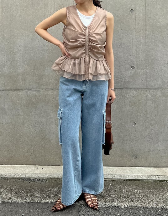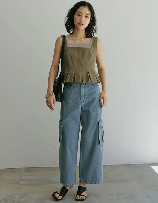 サイドのポケットデザインがポイントのカーゴデニムパンツ。
