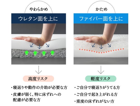 お好みのかたさや、体の状態に合わせて、2種類の寝心地が選べて安心