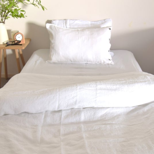 日本のシングルサイズに合わせたオリジナルサイズ。フランス北部産リネンを使い、さらりとしながらも、やわらかなさわり心地。この夏にさわやかな眠りをお届けします。
