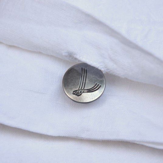 開口部にはLISSOYオリジナルのヴィンテージ感のある金属製ボタンが付いています。同じボタンが付いたクッションカバーとコーディネートを愉しめます。