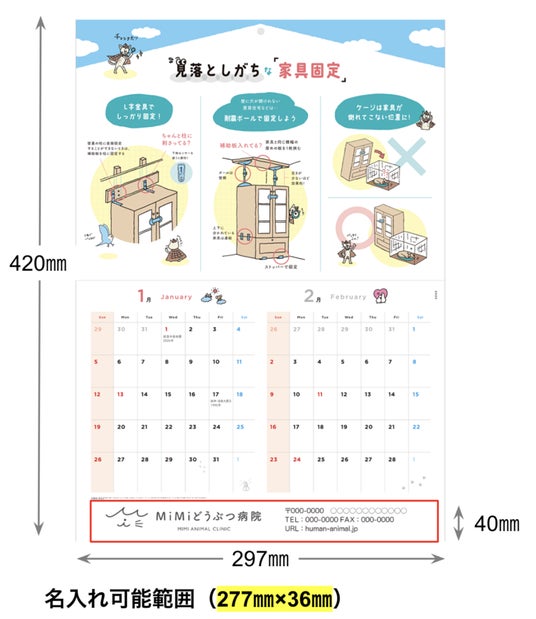 また、動物病院やトリミングサロンの年末ノベルティとして活用いただける、名入れカレンダーも発行しております。