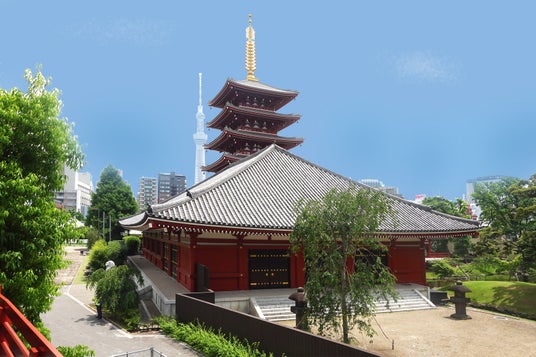 またカウンター席から天井まで伸びる窓からは、浅草のランドマークである五重塔や、スカイツリーを見ることができ、今の季節は新緑の美しい景色が訪れる人を魅了します。