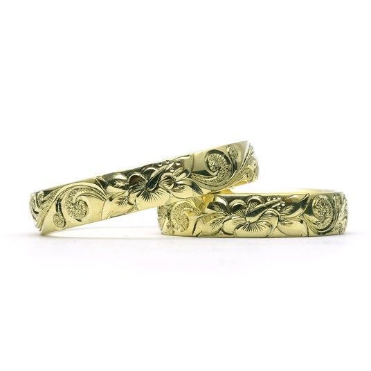 経年劣化に強い強靭な製法で創る「プレミアム鍛造製法」のハワイアンジュエリー結婚指輪/アニバーサリーリングのWeliana(ウェリアナ)からグリーンゴールドとハイビスカスのペアリングが新登場
