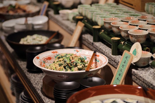同レストランでは、料理人が目の前で握る寿司や揚げたての天婦羅、自家製のローストビーフ、姉妹施設「ル・パン神戸北野」のパティシエが作る自慢のスイーツなど、約60種のメニューをブッフェ形式でご用意。四季折々の味覚や旬を味わっていただけるよう、季節ごとにメニューを変えてご提供しています。