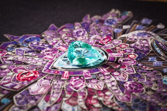 品番:104053 価格:未定 ムーブメント:ピコリッシモキャリバー、手巻き、機械式マイクロムーブメント、厚さ2.50mm、約30時間パワーリザーブ、毎時21,600振動ケース/ダイヤル:ホワイトゴールドおよびローズゴールド製、ペアシェイプパライバトルマリン1石(約9.78カラット)、バゲットカット、オーバルミックスおよびパヴェのブルーサファイア(約51.74カラット)、ピンクサファイア(約19.61カラット) & パープルサファイア(約27.54カラット)、ルビー(約2.97カラット)、タンザナイト(約1.12カラット)、パライバトルマリン1石(約9.78カラット) 、トルマリン(約2.94カラット)、アクアマリン(約7.50カラット)、アイオライト(約3.87カラット)、ピンクガーネット、ロードライト、ルベライト、ピンクトルマリン(約5.23カラット)、アメシスト(約5.45カラット)、ダイヤモンド(約22.55カラット)
