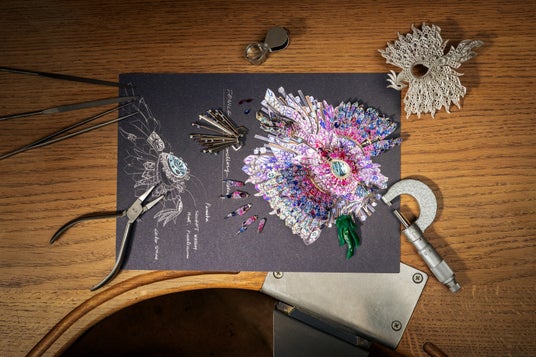 神話上の動物でエタニティを祝いたいと考えたブルガリ ウォッチのクリエイティブ ディレクター、ファブリツィオ・ボナマッサ・スティリアーニは、完成までに3,000時間以上を要した、まさに芸術作品の域に達するタイムピース「フェニーチェ」を生み出しました。このウォッチは、色石を極めるメゾンとしてのブルガリの地位を再認識させるものです。ブルー・ピンク・パープルのサファイア、アメシスト、ルビー、ピンクガーネット、タンザナイト、アイオライト、アクアマリン、ダイヤモンドなどの160カラットを超える色石を選び、見事なグラデーションを作り出しました。 ブルー、レッド、ピンクからパープルまで、さまざまなカラーパレットが美しい色彩を成しています。このシークレットウォッチのセンターのダイヤル上には、希少性の高い9.78カラットのパライバトルマリンが配されています。繊細かつ躍動的な可動式の羽根が手首を包み込むユニークな透かし彫り構造により、鳥が翼を広げて飛び立つ形が表現されています。美しいフェニーチェが復活の光を象徴するスパイクに囲まれている姿からは、ローマのサンタ・マリア・デッラ・ヴィットーリア教会にあるジャン・ロレンツォ・ベルニーニの祭壇画からインスピレーションを得たこのピースの唯一無二の輝きを見てとることができます。