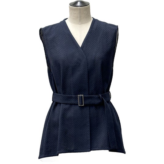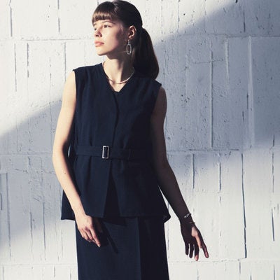 ジレは、前を閉めるとプルオーバーのように着ることができ、ベルトの有無でメリハリのある大胆なシルエットをつくり出すことができるので、1枚で様々な着こなしが叶います。