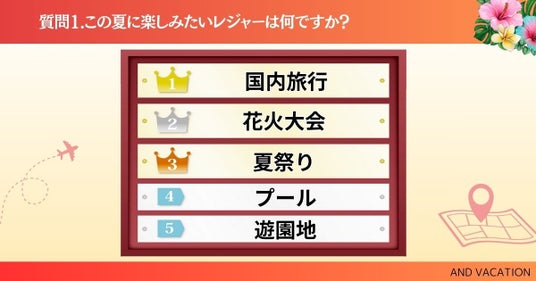 そこで、今回のアンケートでは「この夏に楽しみたいレジャー」について聞き取り調査をしました。ぜひ、チェックしてみてください!