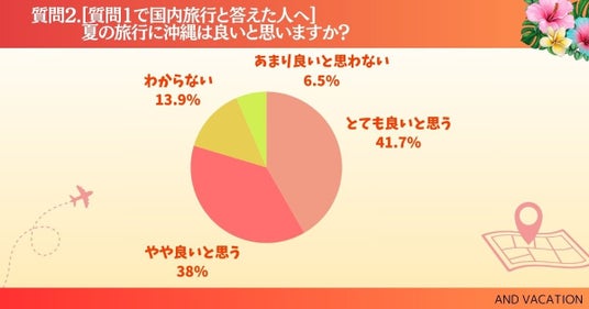 質問2.[質問1で国内旅行と答えた人へ]夏の旅行に沖縄は良いと思いますか?