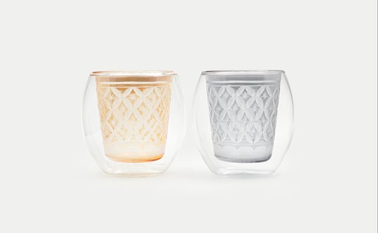 切子は、ガラスの表面にカットを入れる技術のことです。切削を意味する「切」と、その際に出る粉を表す「子」で出来た造語。従来、ダブルウォールグラスで使用される耐熱ガラスへの切子加工は、技術的に困難とされてきました。しかし、切子グラスの魅力をより身近なものに感じられる商品にしたい。という想いから、試行錯誤を重ね、現代技術であるダブルウォール構造を取り入れた、“次世代切子グラス”へのアップデートが実現しました。