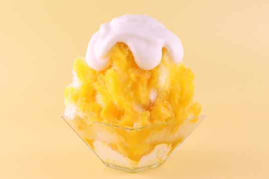 「マンゴー」氷の中にはくちどけなめらかなマンゴームース、トッピングにもマンゴーを使用した鮮やかな一杯。