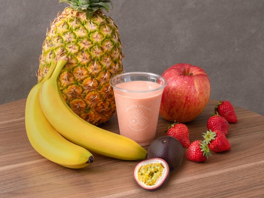 『六本木ミックス』は、青木商店の創業100周年を記念して誕生したスムージーです。パイナップルやバナナ、いちご、りんごといった人気の高い王道フルーツのほか、パッションフルーツをミックスしており、さっぱりと爽やかな酸味が効いた、六本木の街にふさわしい洗練された優雅な味わいを楽しむことができます。たっぷりのフルーツで作ったスムージーは濃厚で腹持ちがよく、食物繊維やビタミン、カリウムなどフルーツに含まれる栄養素も摂取することができ、朝ごはんの代わりとしてスムージーを召し上がるお客様にもおすすめの商品です。