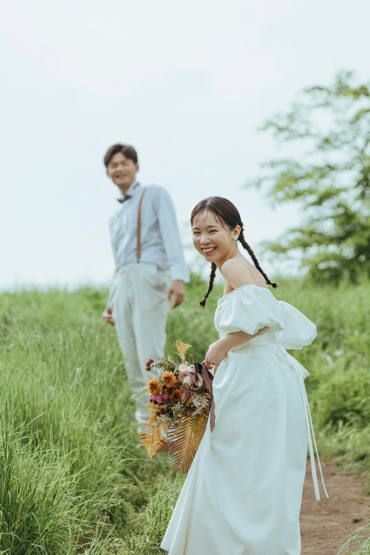 大自然の中でカジュアルにウェディングフォトを残していただけるようなおふたりの自然体をビジュアルで表現いたしました。