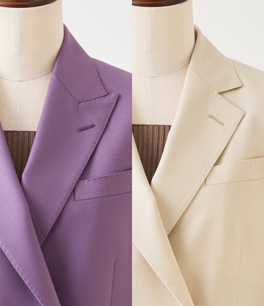 襟デザインピークドラペルのカチッとしたメンズライクなイメージと、ノッチドラペルのソフトでカジュアルなイメージの2つの襟デザインからお好みで選ぶことができます。