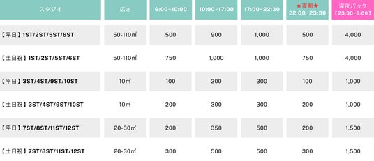 プレOPEN期間中[6/1-6/19]だけのお得なキャンペーンも開催中!スタジオ利用料金が最大半額&オトクな夜割もご用意し、皆様をお待ちしております。