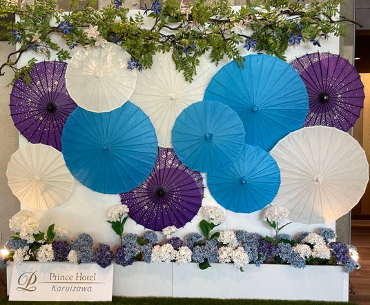 また、「ALL DAY DINING LOUNGE/BAR Primrose」はホテルの敷地内の水辺や新緑を眺める2階にあり、開放的な大きな窓からは雨の日でも雨粒が光る情景が広がるとともに、軽井沢プリンスホテル ウエストのロビーにはカラフルな和傘とあじさいが彩るフォトスポットが登場し、美しい自然とともに映える軽井沢の梅雨をお楽しみいただけます。