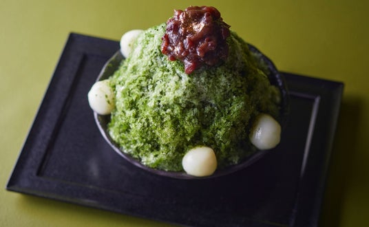 深い緑の抹茶シロップは、国内有数の茶葉産地である八女星野村の厳選した茶葉を使用しています。口に入れた瞬間に茶葉本来の香りと渋み、ほのかに感じる甘みを余韻としてお楽しみください。さらに、ミルクジェラートを中に忍ばせることで抹茶の苦みがまろやかに。トッピングには、粒あん、練乳、白玉を合わせることでどこか懐かしさも感じる一品です。
