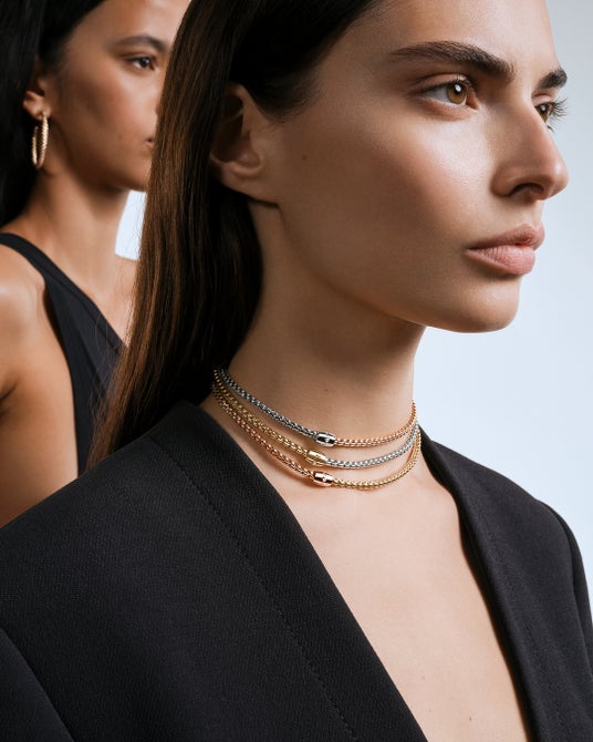 ブランドのシグネチャーである18Kゴールド製の「ノヴェチェントメッシュチェーン」で構成されたコレクションはどれもタイムレスでエレガント。トレンドを超えた不朽の名作です。そしてブランドを代表するアイコンであり特許技術、「FLEX’IT(フレグジット)」ブレスレットは、K18製でありながらチェーンに伸縮性があり、滑らかで最高の着け心地を保証します。