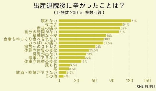 女性200人に「出産退院後」に関するアンケート調査を行った所、