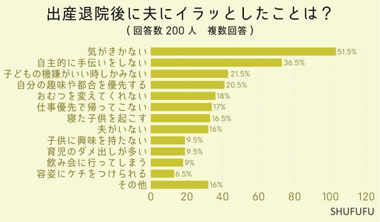 出産退院後に夫にイラッとしたことは?(複数回答)