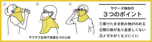 「ヤケーヌ」は日焼け防止を目的としたフェイスカバーで2010年の発売以来、累計販売点数240万点の人気商品です。2020年のコロナ禍以降、息苦しくないマスクとして飛沫防止やマスクエチケットとしてご着用いただく場面もあり、近年は非常に多くのお引き合いをいただいております。昨年は美容にこだわる著名人やYouTuberにも発信頂き、広く認知される様になりました。