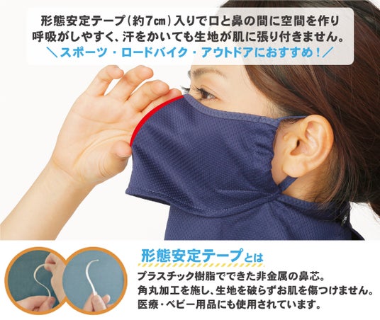 目元から広範囲に日焼けしたくない性能重視のユーザー向け商品です。もっとも日焼けしやすい目部内側が2重になっているのはそのままに、鼻がズレやすかった点を改良し、より安定したフィット感を実現。カラーは従来の2色から、新たに新色ブラックが追加され3色となりさらなる使いやすさを追求しました。