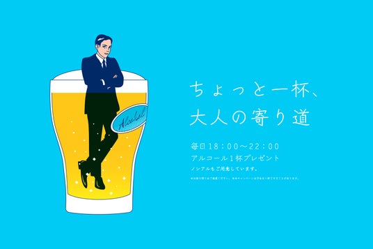 18時以降にご来店いただく方はもちろん、日中から18時以降もご利用されている方にも、いつもお疲れさまの気持ちを込めてスタッフがアルコールをお渡しいたします。(ノンアルコールもお選びいただけます)