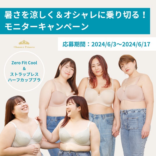 今回のモニターキャンペーンは、「暑い夏を少しでも涼しく過ごしたい」「夏だけのオシャレを思いっきり楽しみたい!」というプラスサイズの方に、グラマープリンセスが特におすすめする夏ブラ2商品をお試しいただき、その感想をSNSに投稿していただく企画です。