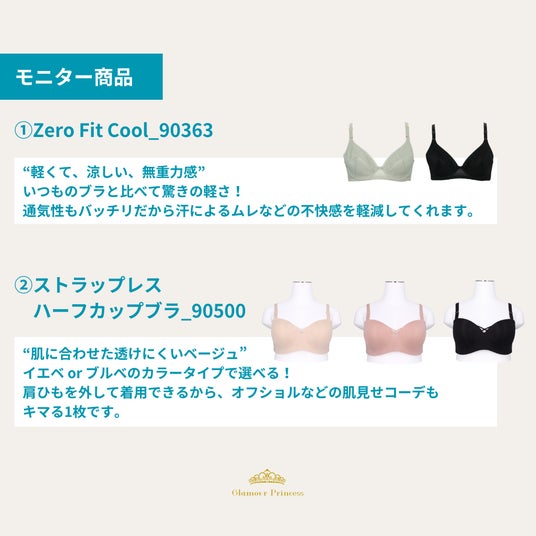 「Zero Fit Cool」と「ストラップレスハーフカップブラ」の2商品をプレゼント