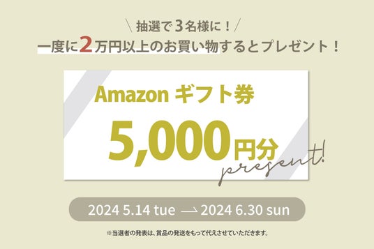萩原株式会社(本社:岡山県倉敷市)が運営する、家具・インテリア オンライン通販サイト「クオリアル」では、2万円(税込)以上のお買い物をすると、抽選で3名様にAmazonギフト券5,000円分が当たるキャンペーンを実施中です(6/30まで)。