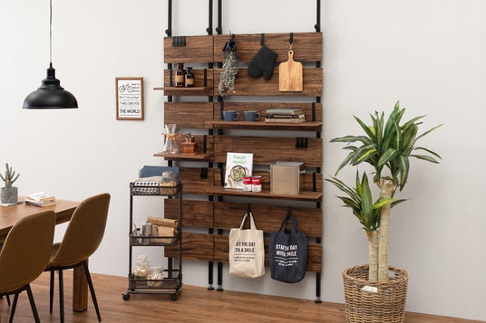 壁に穴を空ける必要が無いので、マンションやアパートなどの賃貸でも設置が可能。パーテーションや間仕切りとしても活躍します。