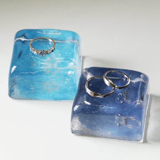 同じ関西にガラス工房を構えるfresco(フレスコ)が制作する、ith神戸三宮アトリエ別注カラーのガラス製リングピローを限定販売いたします。カラーは2色、港町・神戸の空と海をイメージさせるブルーをご用意しました。側面にはithの結婚指輪・婚約指輪の内側に刻印される “マリアージュマーク” が彫り込まれています。