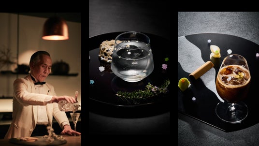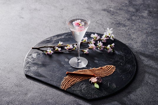 シグネチャーカクテル「千の想」は、多くの和歌にも登場しながら、何代もの桜守によって守られ受け継がれてきた桜、そして戦火をくぐり抜けて今に伝わる京都の名庭園にインスピレーションを受けたカクテルです。