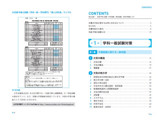 本書特典として気象予報士試験(学科一般・学科専門)「個人分析表」「気象予報士試験分析結果」プレゼント。自分の理解度・弱点がわかり、今後の学習・再受験に役立てることができます。