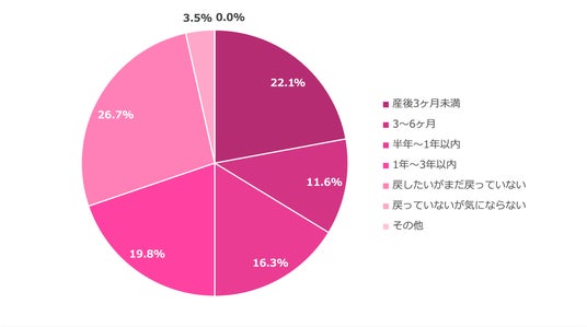 産後の体型・体重を産前に「戻したいがまだ戻っていない」方が26.7%で最多