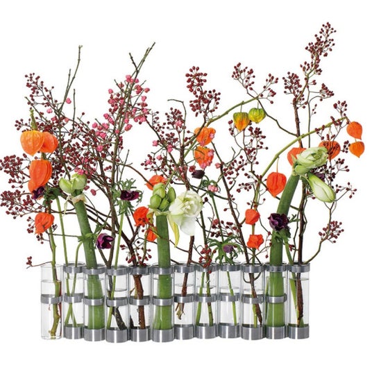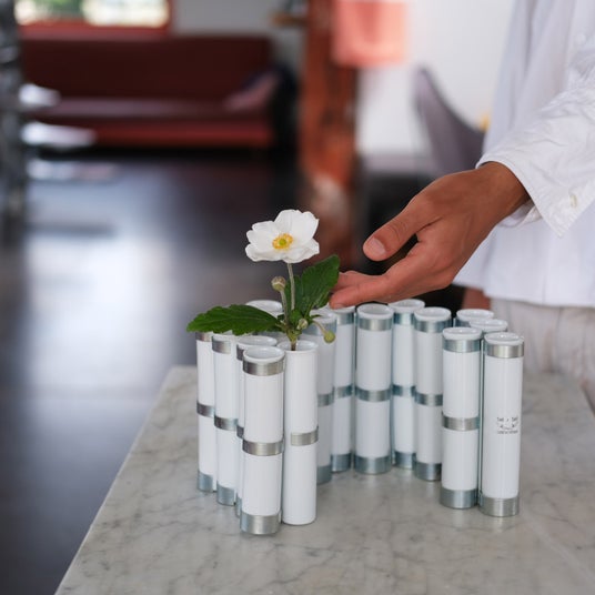 「四月の花器」は日本の生け花からインスピレーションを得たと言われ、つながった16本の花瓶が自由自在に動き、花から詩を引き出します。まっすぐに、なみなみに、円になったり、ぎゅっと寄せ集めたり、その変化はまるで有機物のようです。その他のラインナップもユニークです。ぶら下がってゆらゆらと揺れ動く「なまけものの花器」、ストーンウェアで作られた「小鳥の花器」など。花とは自由のことであり、花器とはそれを受け入れる好奇心のことである、というツェツェのメッセージを感じてください。