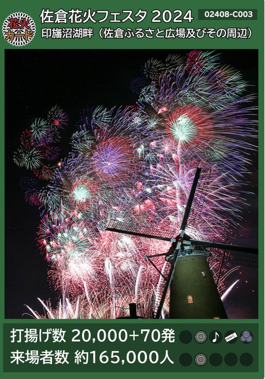 市制70周年 佐倉花火フェスタ2024は、佐倉市制70周年を記念し、県内一・国内最大級の打上発数の20,000+70発!ビッグ・プレミアム・スターマインでは、佐倉の花火大会の目玉である“音楽と連動して打ち上げるワイドスターマイン”を実施。総打ち上げ発数は約10分間で8,000連発以上!