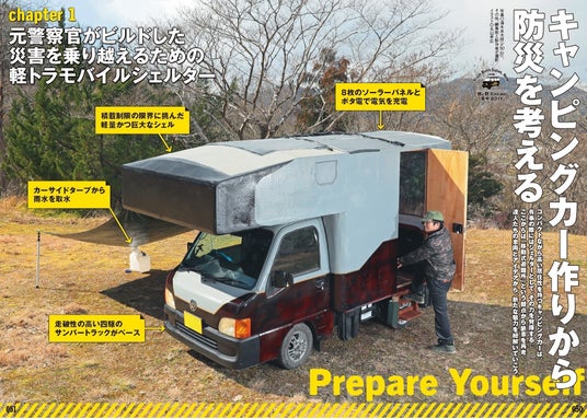 2024年元日に起こった能登半島地震で、あらためて見直されるキャンピングカーやモバイルハウスの避難場所としての有用性。今号では「旅と防災」という視点から車中泊DIYを再考。ユニークな自作キャンパーのカスタムアイデアやテクニックを新たな角度から紹介することで、その隠された可能性を追求します。車旅を楽しむことが、もしもの防災につながる。いつもとひと味違った視点から見る、車中泊DIYの魅力をお楽しみください。