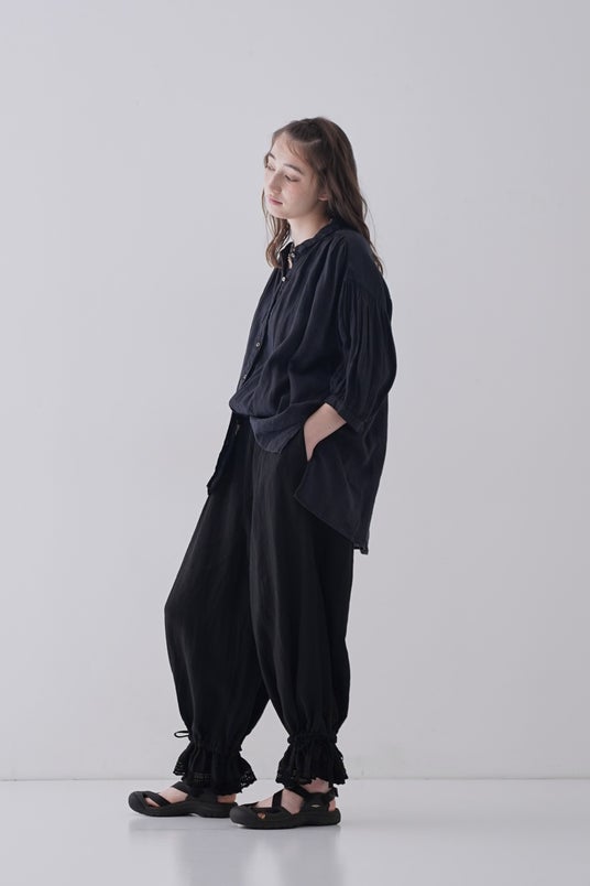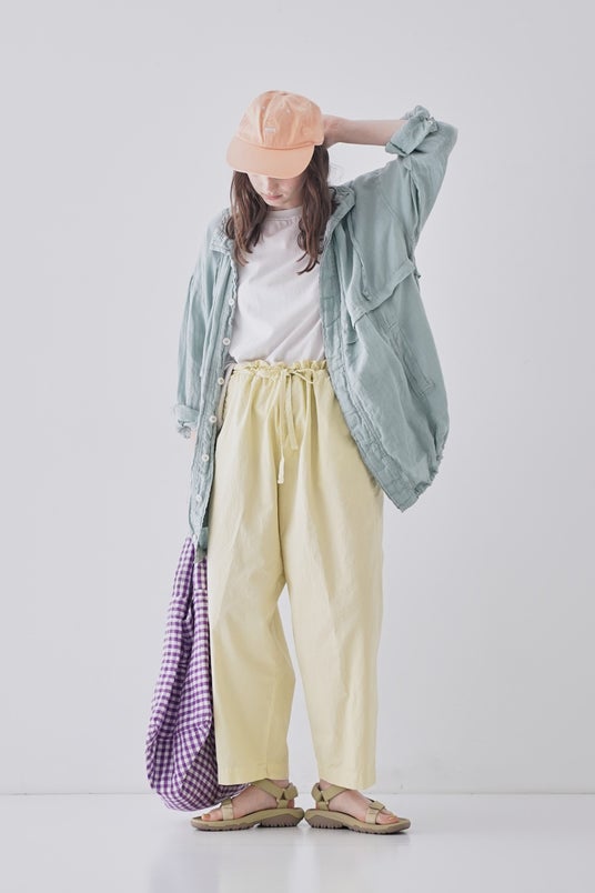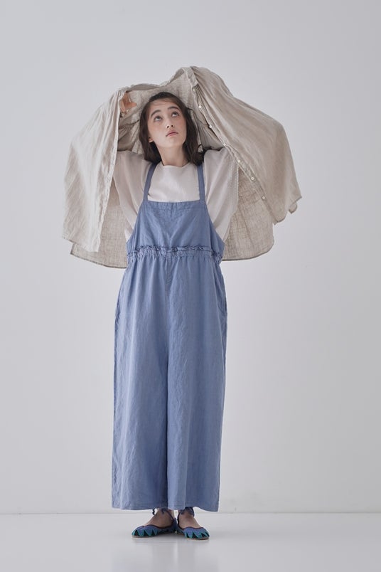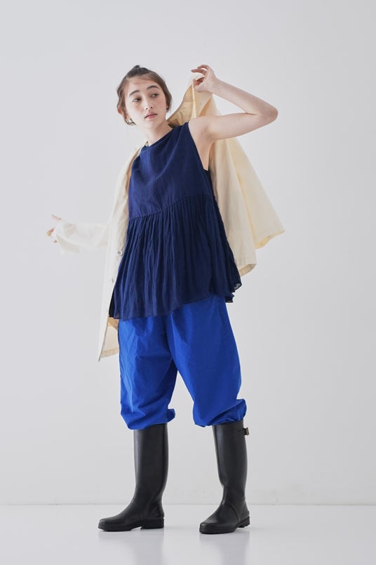 ギャザーをたっぷりと入れ、ふんわりとしたサイジングで肌離れが良く暑い日にも