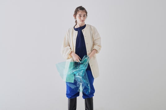 ゆったりとしたシルエットですが、コンパクトな襟が甘さを抑え、女性らしい印象に。