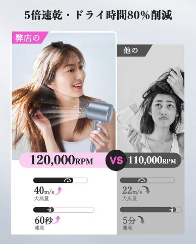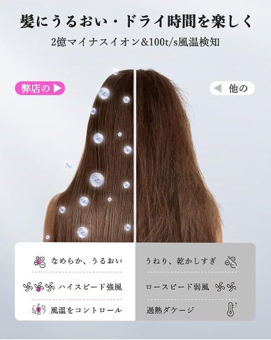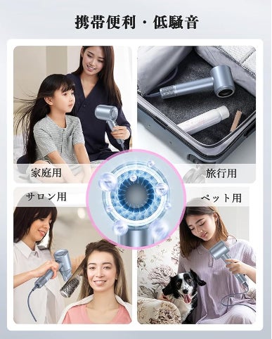ハイスピードドライヤーは、高濃度2億マイナスイオン機能を搭載されて、髪に潤い、静電気を軽減し、髪を保護し、光沢のある髪を与えます。