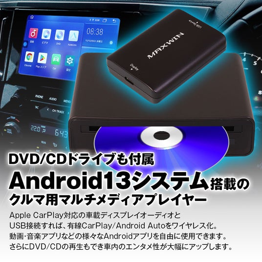 車載専用のDVD/CDドライブをCar AI Boxに接続すれば、純正ディスプレイオーディオの画面でDVD/CDを視聴できます。Wi-Fi環境がなくても使用可能。