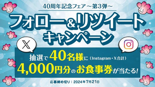 40周年の感謝の気持ちを込めて、当選者40名様にチムニーグループ全店でご利用いただけるお食事券4,000円分をプレゼントいたします。
