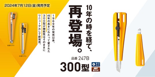 オルファ株式会社(本社:大阪府大阪市、代表取締役:岡田真一)は、2024年7月12日(金)、オルファの小型カッターナイフとしては唯一のネジロック式となる「300型」を発売いたします。