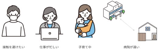 コロナ禍以降、「他の患者との接触リスクを避けたい」との思いから、医療機関の受診を控える患者が目立つようになりました。また、「日中は仕事が忙しい」「まだ子どもが小さいため目が離せない」などといった理由から、気になる症状があるのに通院を先延ばしにしている人も少なくありません。他にも「自宅から通える場所に医療機関がない」「身体的な事情で外出が困難」など、さまざまな事情で通院にハードルを感じている人もいます。