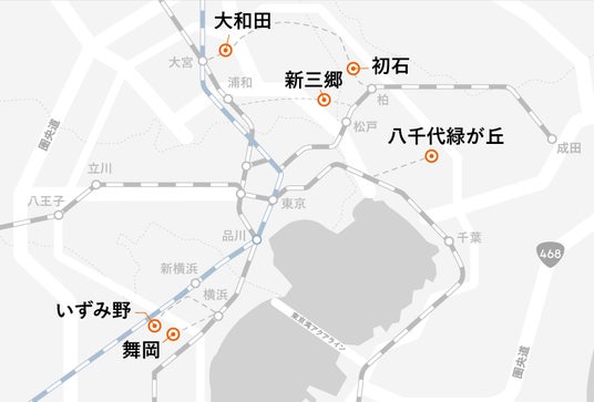 対象条件:東京駅から通勤時間1時間以内(対象時間帯:平日10時~16時台)かつ乗り換え1回以内の駅
