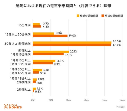 ・通勤における理想の電車乗車時間の最多は「1時間未満」