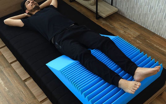 「ミネルヴァの梟」はただ足を上げるだけじゃなくひざ裏から支えて脚全体をケアするフットマットレス。山型カットにかかとが入り込んで足首への負担も軽減します。足のだるさやむくみが気になる方におすすめです。