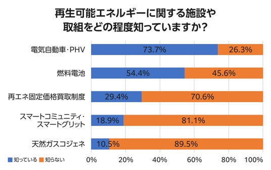 再生可能エネルギーに関する認知について編集部で独自に調査してみました。出典:編集部にて作成