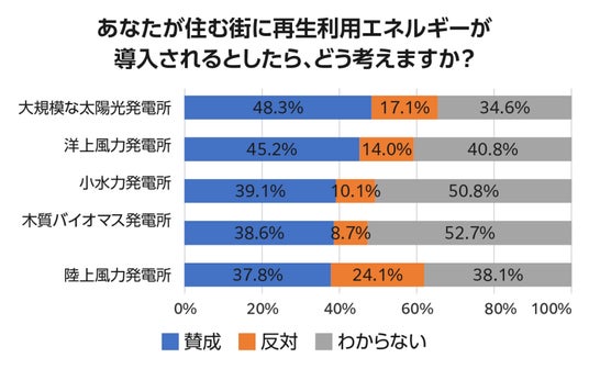 ・ 再生可能エネルギーが自分の住む街に導入される事への理解は反対を上回る